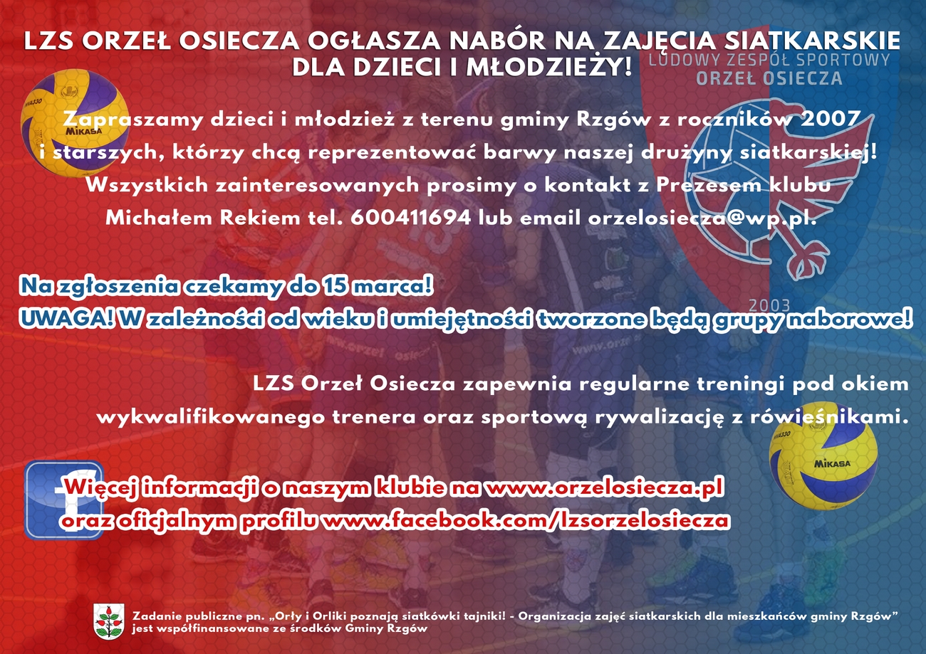 Nabór do sekcji dziecięcych GKS Rzgów oraz na zajęcia siatkarskie dla dzieci i młodzieży w LZS Orzeł Osiecza