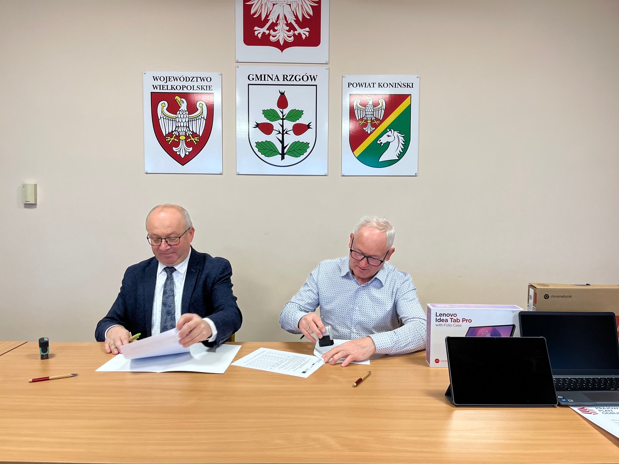 Przekazanie laptopów i tabletów dla uczniów szkó³ z terenu Gminy Rzgów